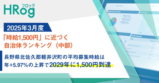 分析用求人ビッグデータを提供する、株式会社フロッグ(所在地:東京都千代田区、代表取締役:阪野 香子、以下「当社」)は、「2025年3月度 『時給1,500円』に近づく自治体ランキング(中部)」を発表しました。