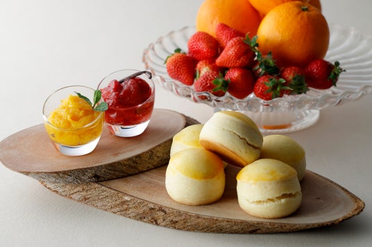 実演メニューのいちごとオレンジ2種類の「コンフィチュール」と「イングリッシュスコーン」