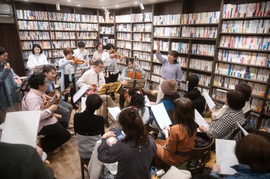 豊成団地商店街にある「古本&喫茶 真本堂」。取材に訪れた日の午前中は読書会、午後はこの店でつながった人たちが演奏を楽しむスプリングコンサートが開かれていた。