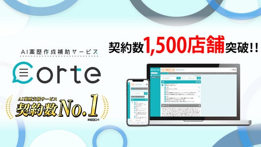 株式会社corte(本社:東京都台東区、代表取締役:升澤 裕介)は、音声認識AIおよび生成AIを活用した薬局向けクラウドサービス「corte(コルテ)」の契約店舗数が、この度1,500店を突破いたしました。