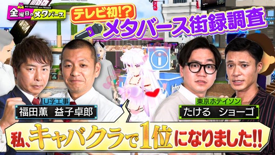 7月19日(金)は、U字工事と東京ホテイソンが初登場。「テレビ史上初の試み!?メタバースで街頭インタビューバトル」として、メタバースプラットフォーム「cluster」にはどんな方がいるのか、2組に調査していただきました。