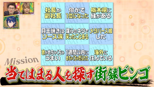 負けていられないU字工事は、たどたどしいインタビューで大苦戦。その中で、歌がうまい人を探していると、メタバースアイドルユニット「東京限界少女」のスタッフと遭遇。イベントのため本人たちは呼べなかったものの、最後に「目玉焼きはソース派」を唐突に聞いてみると、「ソース派ですね」と運良くクリア。
