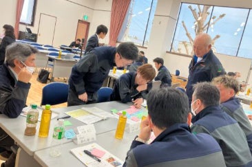 ▲置賜建設株式会社社員によるワークショップ(2025年4月25日の研修での様子)