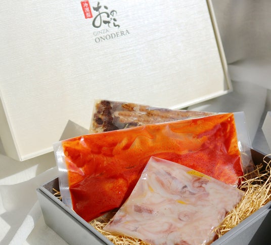 同ブランドは、鮨のジャンルだけでも、高級業態、回転寿司業態、カウンター鮨入門業態の運営を行うほか、2024年にはラーメンやうなぎといった新しいジャンルへのチャレンジを展開してまいりました。この度、「Ginza ONODERA Online Store」オープンに伴い、第1弾の商品として「鮨 銀座おのでら 冷凍鮨」の一般販売も開始いたします。同商品は、今年3月に始動した、初の行政との連携施設である「銀座おのでら 第1食開発拠点施設」(茨城・境町)にて研究開発、生産、配送を行っております。商品は、特殊冷凍機「アートロックフリーザー」の開発を手掛けるデイブレイク社と約3年前より共同開発を行い、「鮨 銀座おのでら」クオリティーの味を、店舗にお越しになれないお客様にもお楽しみいただける本格的な商品が完成いたしました。また、第1弾の販売商品ラインナップには、今年3月にオープンした“カウンター鮨入門店”の「鮨 銀座おのでら 息子 梅田店」(大阪・梅田)で人気のサイドオーダー商品である「北海道郷土料理 カスベの煮付け」「銀座おのでら特製 手仕込み辛子明太子」や、「自家製いかの塩辛柚子づくし」も販売いたします。(第1弾の商品ラインナップは全て冷凍状態でお届けいたします)。