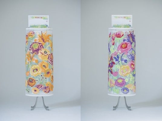 スタンドには花の刺繍をあしらったテキスタイルを採用しております。
