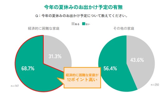 今年の夏休みのお出かけ予定の有無、経済的に困難な家庭とその他の家庭で差