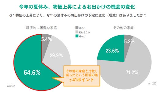 経済的に困難な家庭の約7割が「物価の上昇によりお出かけの機会が減った」