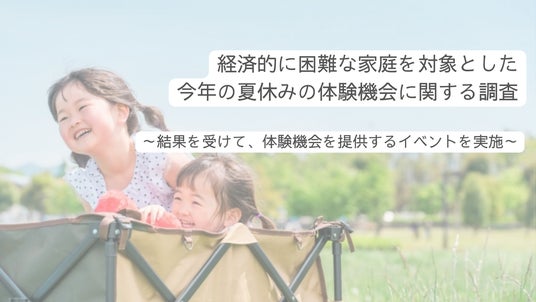 認定特定非営利活動法人カタリバ(本部:東京都杉並区、代表理事:今村久美、以下カタリバ)は、この度、経済的に困難な家庭に対してオンラインで支援を行う「キッカケプログラム」の利用家庭、その他の家庭の合計397世帯に対し、今年の夏休みのお出かけについての調査を行いました。また、この結果を受けて、キッカケプログラムを利用する経済的に困難な家庭の子どもを対象にイベントを開催する運びとなりましたのでお知らせします。