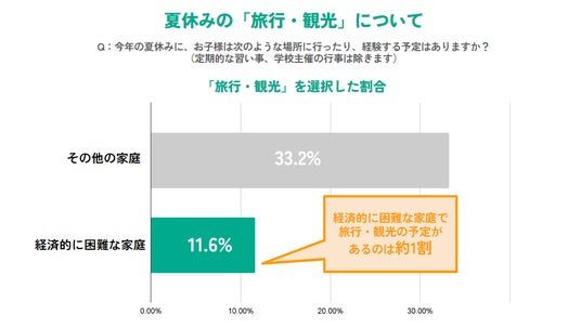 ・経済的に困難な家庭で「旅行・観光」の予定があるのはわずか1割