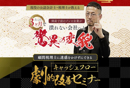 公認会計士、税理士の資格を持ちコンサルタントとして中小企業の業績や資金繰り改善の支援を行っている株式会社リーベルタッド(本社:茨城県守谷市、代表取締役社長・税理士・会計士:市ノ澤翔)を率いる市ノ澤翔が、中小企業の経営者の方々に向けて「キャッシュフロー劇的改善セミナー」を5月から開催中です。経営者の皆様が資金繰りの不安を解消し事業経営に全力投球できよう、講師を務める市ノ澤が財務面からアドバイスします。同セミナーは四部構成となっており、財務管理においてすぐに応用できる会社経営における「合法的な節税戦略」から「キャッシュフローの健全化」まで網羅します。質疑応答の時間も設けておりますので、財務管理に関して理解しづらい点、学んだことを発展的に活かすたための質問にも丁寧にお答えします。直近での開催は5月8日(木)を予定しておりますので、ぜひお申込ください。