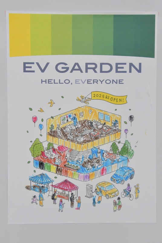 福島日産自動車株式会社(以下福島日産と略、本社:福島県福島市、代表取締役社長:金子 與志幸)は、2024年12月27日(金)に設立した新会社「EV GARDEN」(福島県福島市仲間町9-16)の工事現場において、4月下旬より子どもたちのEV GARDEN塗り絵を掲出いたします。
