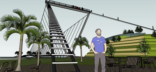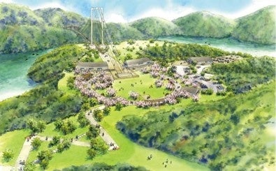 橋の長さは420mとなり、日本最長の人道つり橋になる予定(世界でもトップ10)。