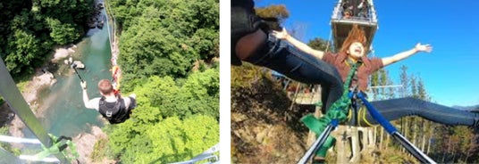 バンジージャンプは、高さ約60メートルのつり橋から飛び降りるスリル満点のアトラクションです。ジャンプ台はつり橋の中央に設置されており、周囲の美しい自然景観を眺めながら、心臓が高鳴るようなジャンプを楽しむことができます。