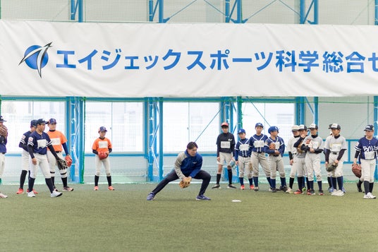 当日は元プロ野球選手たちが講師となり、トレーニング方法のコーチングや野球教室を実施するとともに、エイジェックスポーツ科学総合センターによる専門的なサポートのもと、身体能力や運動特性を科学的に分析し、子どもたち一人ひとりの特性を可視化しました。そして、その場で測定内容をフィードバックし、数値の意味や「どうすれば伸ばせるか」といったポイントも併せて説明しました。