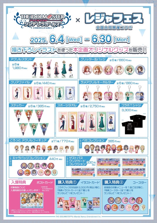 レジャフェス第3弾となる今回は、『アイドルマスター シンデレラガールズ』とのコラボレーションが決定。2025年6月4日(水)~6月30日(月)の期間、全国各地にあるレジャー施設や温浴施設でイベントを開催いたします。