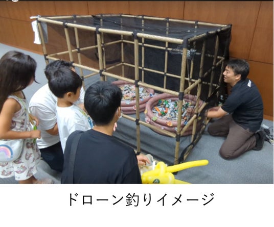 ドローンに取り付けた紐とマグネットでお菓子を釣るドローン釣りです。前後左右にドローンを動かして、ゲーム感覚でドローンの操縦を体験いただけます。