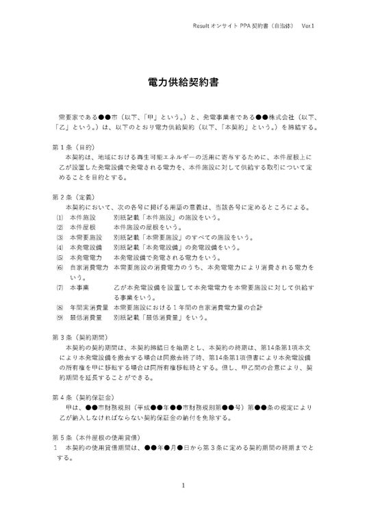 1. オンサイトPPA契約書(民間版)- 需要家(民間)の建物・工場・倉庫の屋根などで太陽光発電を行う場合を想定したオンサイト型PPAの契約書。