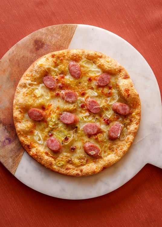 常陸の輝きソーセージのピッツァ 茨城県産葱ソース オイスター風味