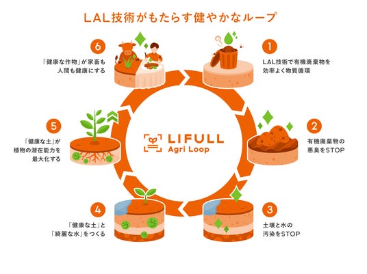 LIFULL Agri Loopは大創KET研究所が開発した水性触媒を利用した事業を展開しています。水性触媒が持つ物質の酸化還元反応をコントロールする機能で、有機物の物質循環の促進や、バイオスティミュラントであるフルボ酸フミン酸の生成が可能です。LIFULL Agri LoopはLAL技術により「地球を健康」にして、高品質な食料生産を実現し、生産者の収益向上と、消費者への安全・高品質な食料の提供を実現してゆきます。株式会社LIFULLについて (東証プライム:2120、URL:https://lifull.com/)