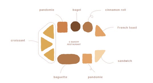 「BAKERY RESTAURANT C」では、毎日焼き上げる30種類以上のパンをご用意しています。サクサクのクロワッサンや、ふわふわの食パン、バリエーション豊かなデニッシュなど、どれも自信を持ってお届けする逸品です。パンの香りに包まれながら、お気に入りの一品を見つけてください。