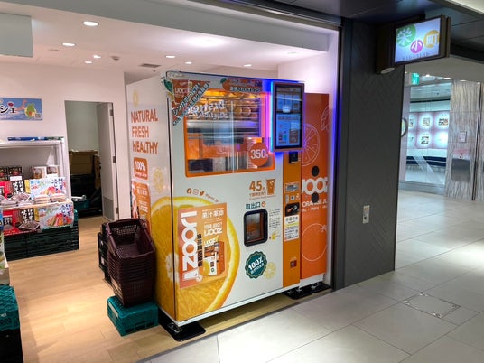 名古屋 サカエチカで稼働中の350円生搾りオレンジジュース自販機IJOOZ