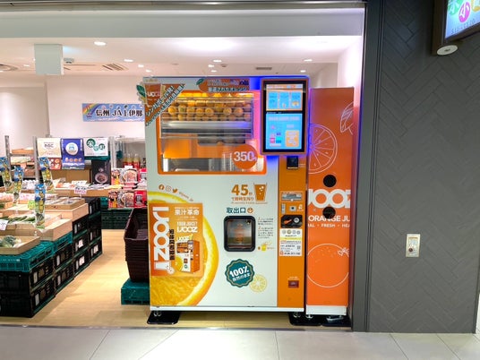 生搾りオレンジジュースの自動販売機を展開するIJOOZ(アイジュース)株式会社は、サカエチカ(住所:愛知県名古屋市中区栄三丁目4番6号先)期間限定ショップ「栄小町」で、生搾りオレンジジュース自動販売機の稼働を開始しました。地下街での設置実績は、日本初となります。