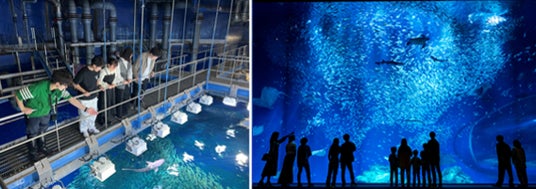 水族館の職員さんと一緒に水族館のバックヤードを見学します。魚たちが泳ぐ姿を水槽の上から見たり、ろ過装置の仕組みや海の生き物について、職員さんから直接お話を聞いたりすることができます。