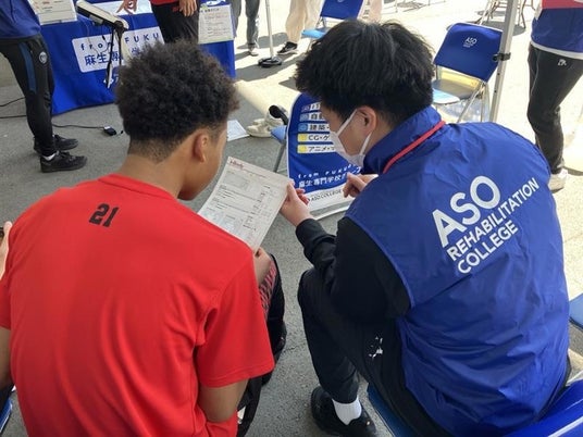 専門学校 麻生リハビリテーション大学校は、2025年4月26日(土)、27日(日)に飯塚市総合体育館で開催された、全国トップレベルの高校バスケットボール大会「飯塚カップ2025」にて、体成分分析装置「InBody」の無料測定体験ブースを出展しました。