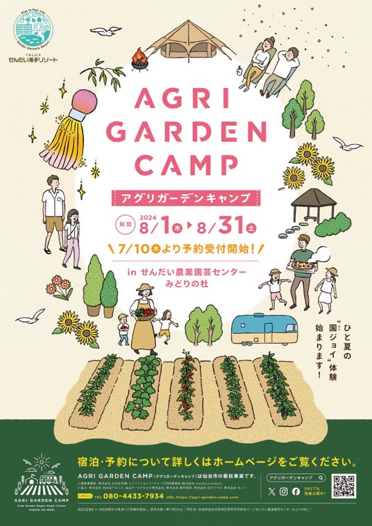 令和6年8月1日から8月31日までせんだい農業園芸センターみどりの杜で、宿泊体験ができるアグリガーデンキャンプを実施します。