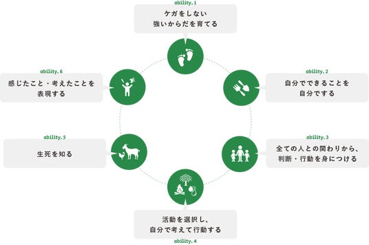 どろんこ会グループの子育てでは、就学前教育の前段階から非認知能力を育むことに重きを置いています。そのために必要な6つの力を身につけることを目標としています。