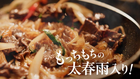 お母さんが「もっちも~ち」と夕飯のおかずについて家族に電話をし、「韓の食菜 春雨プルコギ」の商品特徴であるもちもちの太春雨のおいしさをキャッチーに伝える内容となっています。