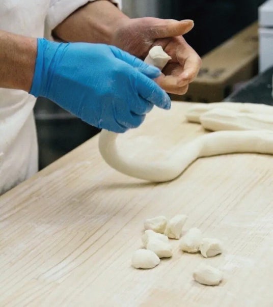 皮は、手延べをしたこだわりの皮を1枚1枚手作りし、焼き上げたときに「カリッともっちり」とした独特の食感が特徴です。冷めても硬くなりにくくモチモチ感が続きます。