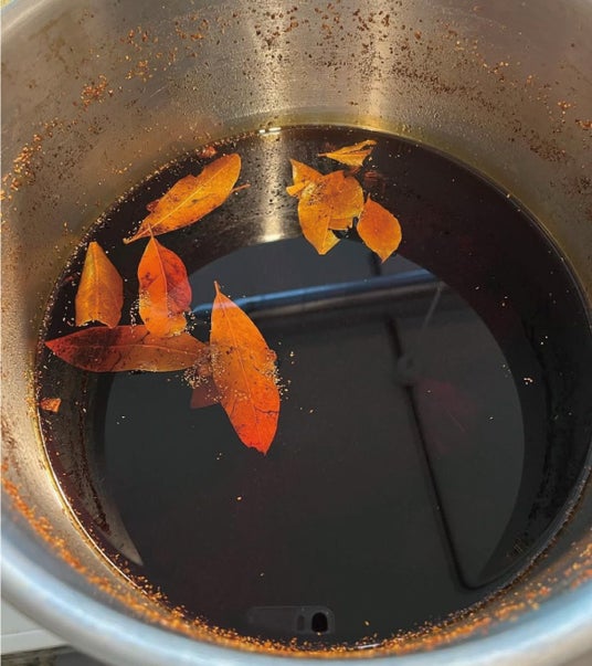 13種の薬膳(八角、山椒、茴香、桂皮、黒胡椒、高良姜、陳皮、ナツメグ、クミン、丁香、生姜、甘草、山奈)、鷹の爪、ネギ、ニンニクを熱して漬け込んだ、特製ラー油でお召し上がりいただきます。香り豊かなラー油が餃子の旨みを、さらに引き立てます。