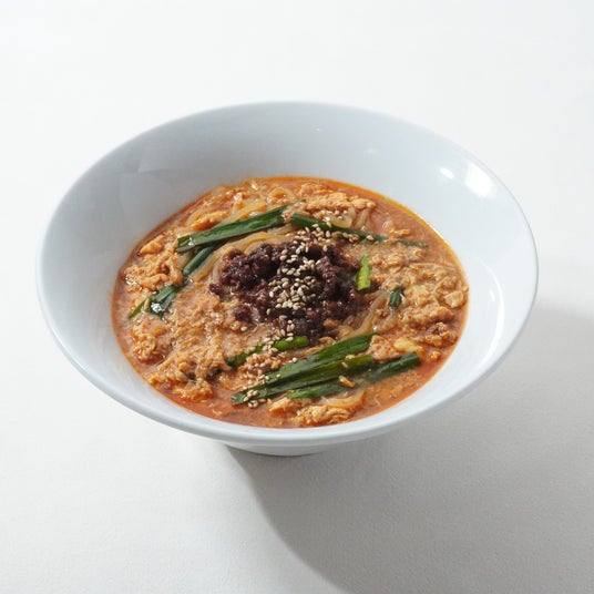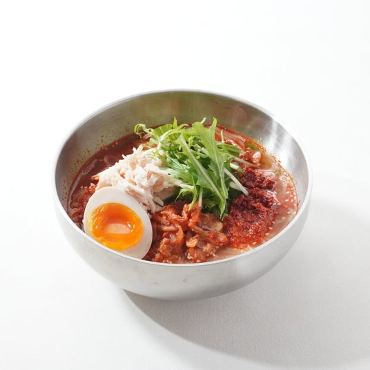 旨辛冷麺:山形冷麺の特製スープに唐辛子の辛味と旨みをプラスした、パンチのある一杯。辛いだけじゃなく、コクと深みがしっかり感じられる仕上がり。辛党の方にぜひ味わってほしい一品です。