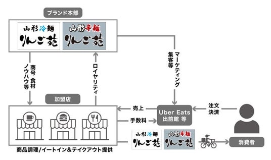 当社では「家業の事業化」を取り組みの軸の一つとしており、「つじ田」「金子半之助」「田中商店/田中そば店」といった弊社のメインブランドは、それぞれ創業者から事業を引き継ぎ運営を行っています。引き継いだいブランドを当社のノウハウにより、家業では難しかったスピード感のある多店舗展開や海外進出、中食(食物販)やデリバリー(BSS)への展開など、食ブランドを多重活用したビジネスへと事業を進化させています。この度、提携して頂いた「りんご苑」様も、山形県で40年に渡り地元の皆様に長年愛されてきたブランドで、店舗名やレシピなどを当社にお貸し頂き、BSSの事業を通して日本全国のお客様へ商品をお届けし、収益の一部は「りんご苑」の運営会社様に還流する取り組みとなっています。今後も、このような取り組みを通し、日本の各地域でお客様から愛されている飲食ブランドをお持ちの事業者様に、当社のノウハウを提供し、BSSを通した全国展開や、国内外での実店舗の展開支援などで、知名度向上や新たな収益源を提供し、末永く運営して頂ける様にご支援をしていきたいと考えています。ぜひ、提携等ご検討頂ける事業者様は、当社までお問い合わせください。
