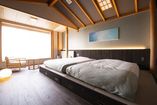 五月の空、澄んだ青が印象的な「浅葱 Asagi」の間。