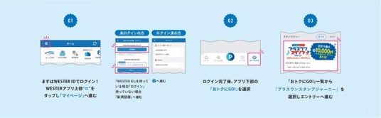 WESTERアプリの「おトクにGO!」より、「プラスワンスタンプジャーニー」を選択し、「タップしてスタート!」からキャンペーンエントリーを行い、スタンプシートを取得してください。