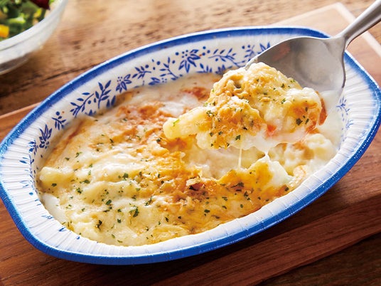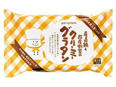 産直提携する産地の鶏肉とほうれん草、国産野菜(玉ねぎ、人参)を入れ、ソースに宮城県蔵王産のミルクを使用しています。バターとチーズを約1.4倍増やし、さらにクリーミーな味わいにリニューアルしました。パルシステム山梨 長野の利用者が開発に協力した商品です。
