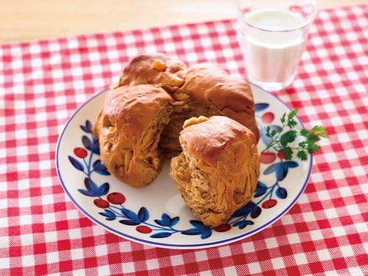 産直提携する産地の小麦を使用した、直径約12cmのパンです。キャラメル風味のふんわりした生地に、砂糖漬けのりんごを練り込み焼き上げました。パルシステム埼玉の利用者が開発に協力した商品です。