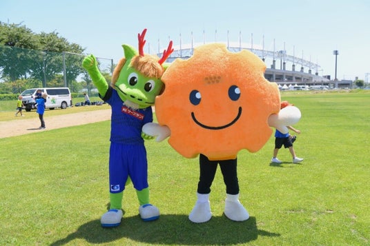 カンプロ公式キャラクターの「くるる」がスタジアムに来場!試合前にくるるとホーリーくんと一緒にフォトセッションを行います。