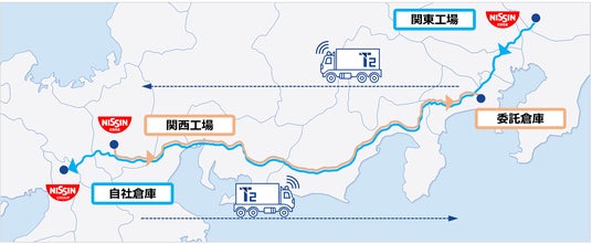 日清食品 関東工場 (茨城県取手市) → 関西エリアの自社倉庫 (大阪府摂津市)