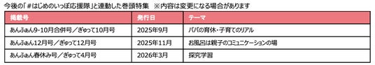 園児とママ・パパの情報誌「あんふぁん」「ぎゅって」を発行する株式会社こどもりびんぐ(所在地:東京都千代田区、代表取締役:藤田基予)では、2025年度の年間テーマを「#はじめのいっぽ応援隊」とし、年間を通して応援。初めてのことにチャレンジする子ども・ママ・パパの成長を共に応援する企業も同時に募集しています。