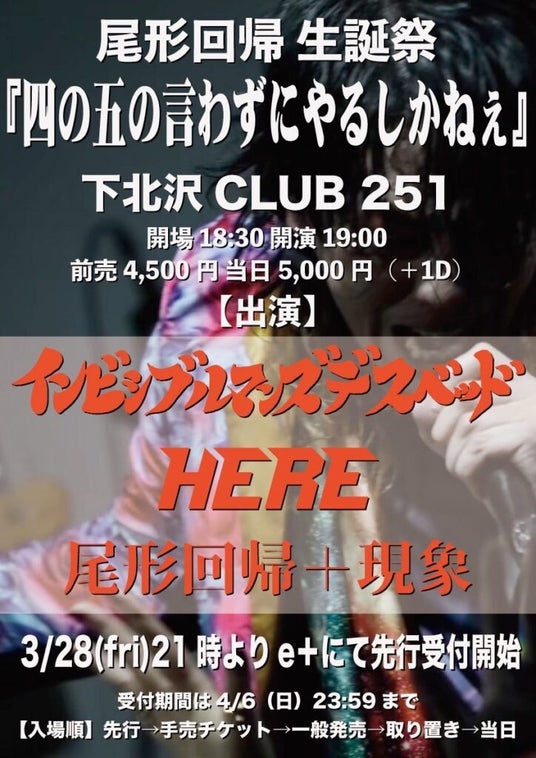 6月27日(金)には、HERE・Vo.尾形回帰の生誕イベント『尾形回帰 生誕祭「四の五の言わずにやるしかねぇ」』が開催。