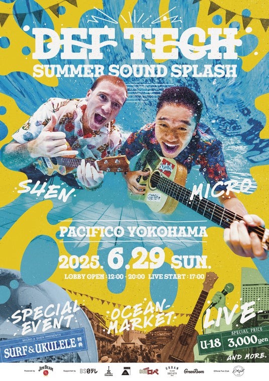 日本の老舗サーフカンパニー「マニューバーライン」からは、Microからのサーファー特典を、ハワイを代表するウクレレブランド「KoAloha」からは、Shenからのウクレレ特典などをプレゼント。Def Techならではの企画に加え、屋外ではサントリー「ジムビームハイボール」が飲めるドリンクエリアや、ハワイアンフードが食べられるキッチンカーによるフードエリアも一般開放。