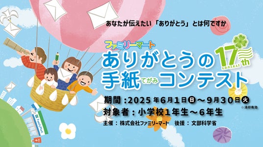 株式会社ファミリーマート(本社:東京都港区、代表取締役社長:細見研介)は、全国の小学生を対象とした、文部科学省後援事業「ファミリーマートありがとうの手紙コンテスト2025」の応募受付を2025年6月1日から開始いたします。応募いただいた作品は、ジャーナリストの池上彰氏を審査員長とする厳正な審査のもと、感謝の気持ちや視点、表現などの観点から評価を行い、文部科学大臣賞(全国1名)や各ブロックの最優秀作品賞(全国7ブロック・20名)などを決定いたします。コンテストの受付期間は9月30日(火)まで、審査結果は12月以降にファミリーマートのホームページで発表いたします。