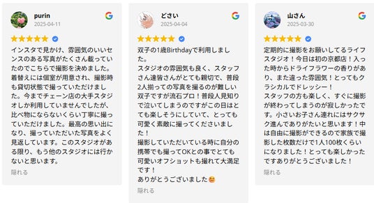 リピーターになられる方も多く、毎年「今年はいつライフスタジオにいく?」とライフイベントとして来て下さるご家族もいます。
