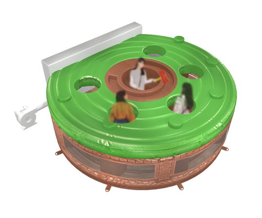 2チームに分かれてバレーボールのように対面でゆるっと玉入れ勝負!