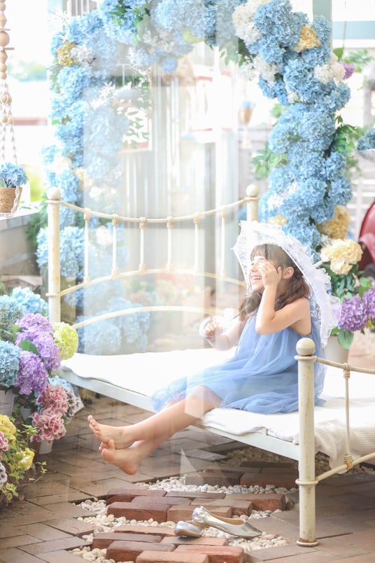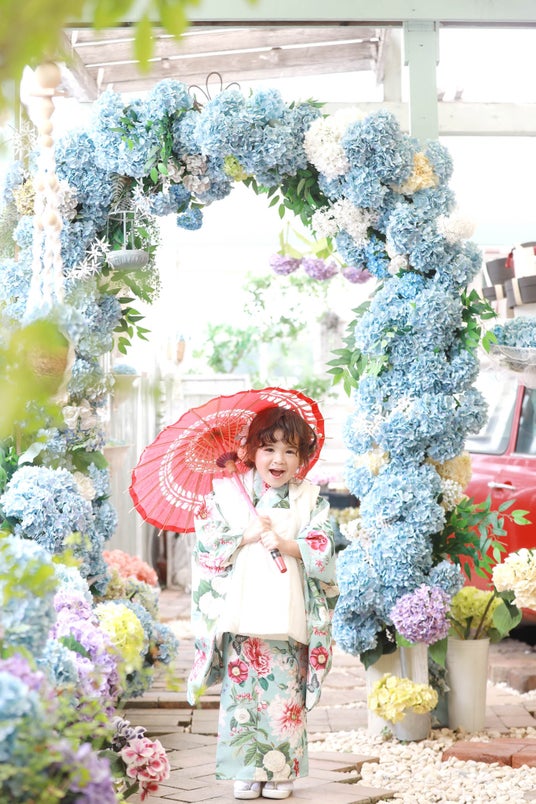 季節の花に囲まれたテラスは、ベビーからキッズ、家族写真、ソロショットまで幅広い撮影にマッチします。衣装の雰囲気に合わせて、小物やライティングのアレンジも可能。事前のご相談で、理想の一枚を一緒にデザインしましょう。