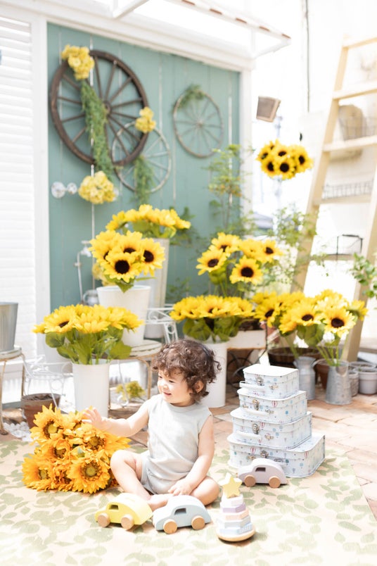 ○ 春の訪れを告げる、やさしい黄色が印象的なテラス。卒園・入学記念やバースデーフォトにおすすめ。