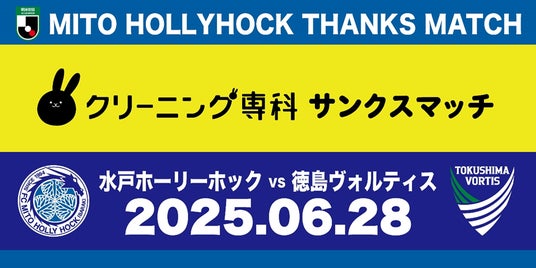 6月28日(土)に開催するホームゲーム(2025明治安田J2リーグ第21節 水戸ホーリーホックvs.徳島ヴォルティス)を、株式会社ユーゴーにご支援いただき「クリーニング専科サンクスマッチ」として開催することとなりましたので、下記の通りお知らせいたします。